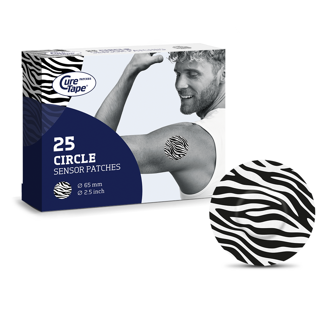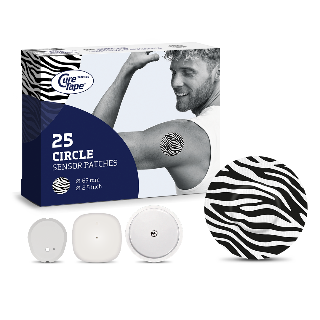 The CureTape Circle round sensor patch is perfect for concealing your CGM sensor. One pack contains 25 round patches with a diameter of 6.5 cm.