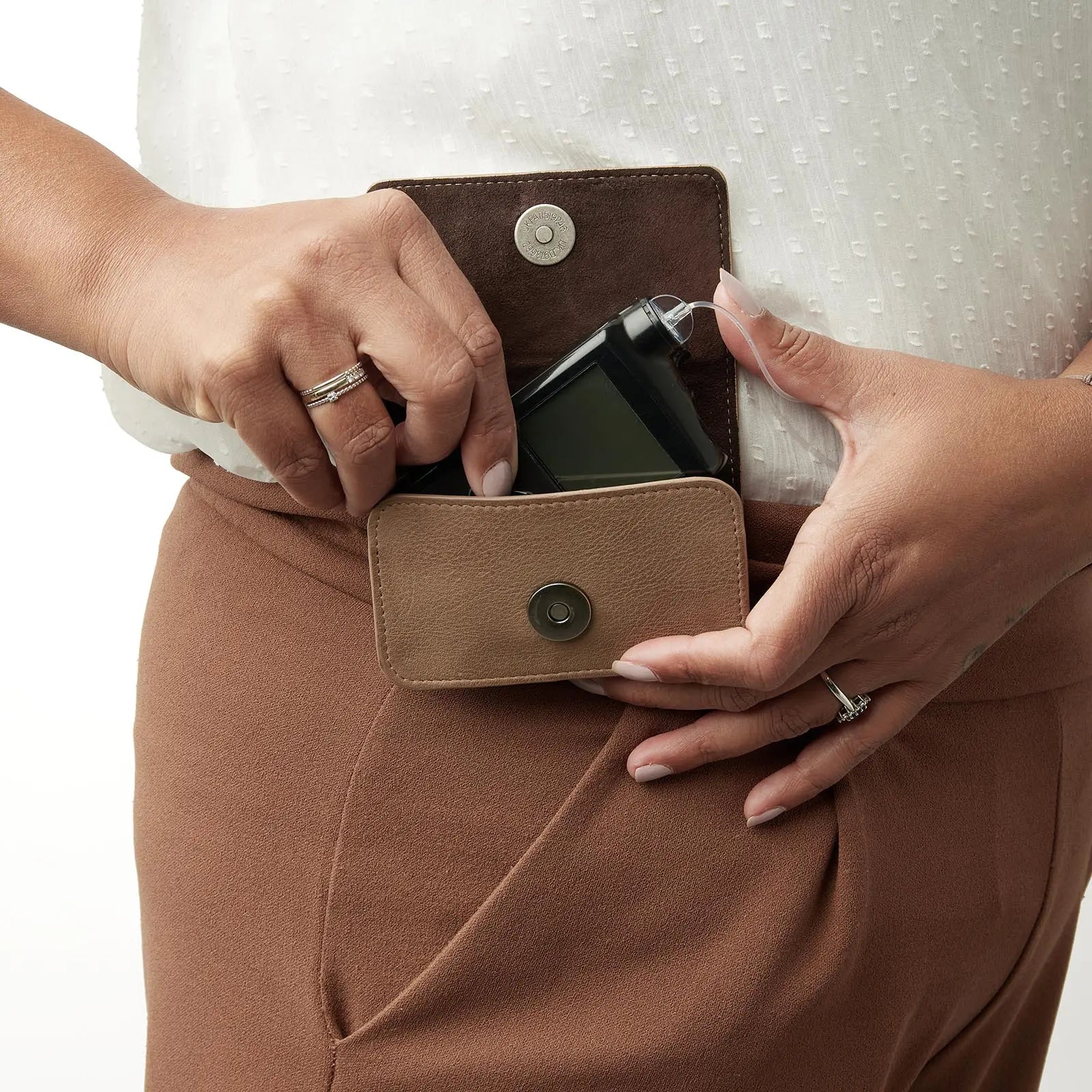 This beautiful pump pouch, made from high-quality, full-grain cowhide , is more than just an accessory and looks super stylish. It's a smart way to carry your insulin pump, making your life with diabetes and a pump easier. Thanks to the clever design with a lockable flap on the top and a practical magnetic button , you can quickly and easily stow your insulin pump and retrieve it whenever you need it. The pump pouch features a practical clip and belt loop on the back , allowing you to easily attach it to your pants or belt. The MED KEEPER insulin pump pouch from Sweet Collections offers you comfort, convenience, and style – all in one! The leather diabetes belt pouch has compact dimensions and offers enough space for all common insulin pumps, such as the Accu Chek Insight, Spirit, MyLife Ypsopump, Medtronic Minimed, and Tandem t:slim. INTERNAL DIMENSIONS: 10 × 8 × 3 cm COLOR: black FEATURES: