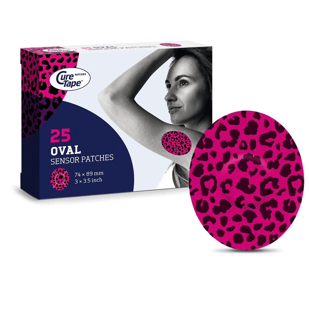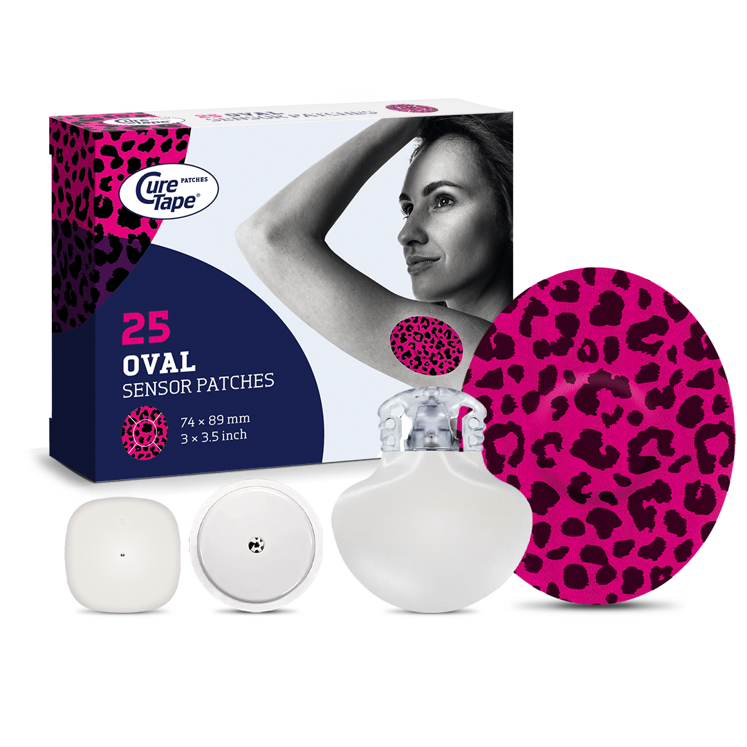 Le patch ovale pour capteur de CureTape est idéal pour dissimuler votre capteur de glycémie en continu. Un paquet contient 25 patchs ovales de 74 mm x 89 mm.