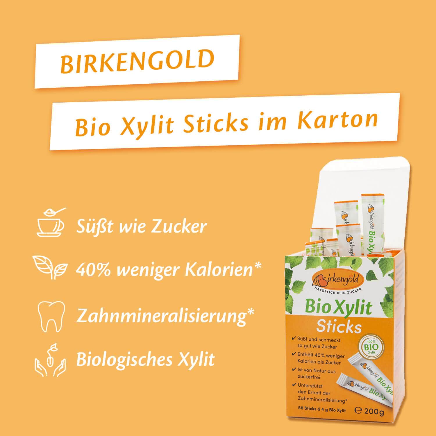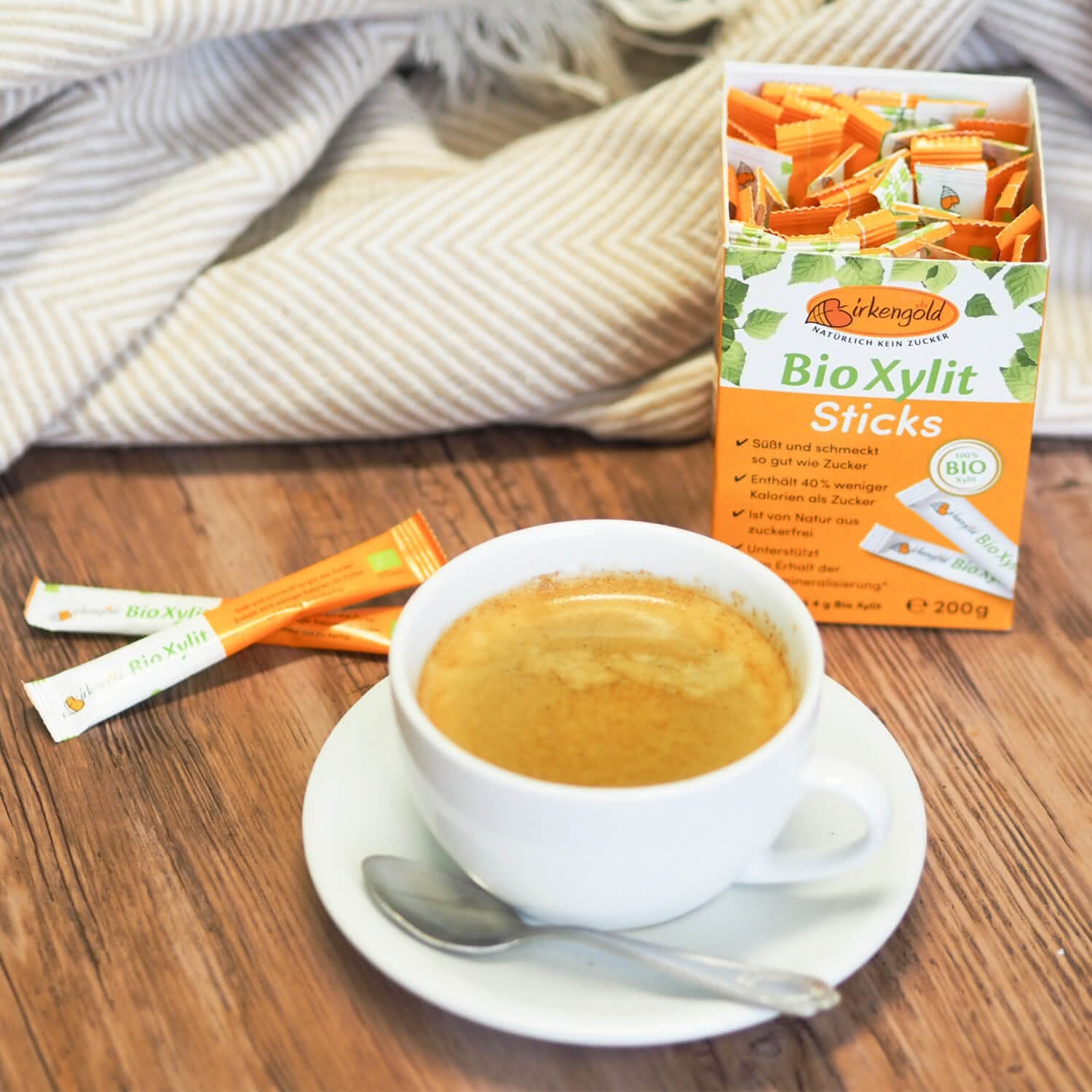 Schau dir Sonja´s Erfahrung mit den neuen Xylit Produkten an Birkengold® Bio Xylit Sticks sind mit je 4 Gramm Bio Xylit gefüllt. Das entspricht ungefähr einem Teelöffel Birkengold® Bio Xylit. Sie eignen sich bestens zum Mitnehmen, damit du auch beim "coffee to go" nicht auf Ihr Birkengold® Bio Xylit verzichten musst. Außerdem sind die 4 Gramm auch genau die richtige Menge für die regelmäßige Zahnpflege. Birkengold® Bio Xylit ist genau so süß und schmeckt wie Zucker, weist jedoch eine Vielzahl positiver Eigenschaften auf. Süßen & Backen: Verwenden Sie Birkengold® Bio Xylit einfach wie Zucker, zum Süßen von Getränken zum Backen und Zubereiten von Marmeladen und Desserts. Ersetzen Sie bei Rezepten die angegebene Zuckermenge durch die gleiche Menge Birkengold® Bio Xylit . Auf unserer Homepage finden Sie viele Rezepte und Backtipps. Lagerbedingungen: Trocken lagern. Ohne Gentechnik hergestellt. Vegan Hinweise: Kann bei übermäßigem Verzehr abführend wirken. Haustiere: Bio Xylit ist nicht für Haustiere geeignet, besonders Hunde dürfen Xylit nicht fressen. Es ist, wie auch Weintrauben oder Schokolade, nicht verträglich und für manche Hunde können bereits kleine Mengen gefährlich sein. *Werden Speisen und Getränke mit Bio Xylit gesüßt, trägt dies zum Erhalt der Zahnmineralisierung bei. Für Ihre Gesundheit sind eine ausgewogene Ernährung und gesunde Lebensweise sehr wichtig.